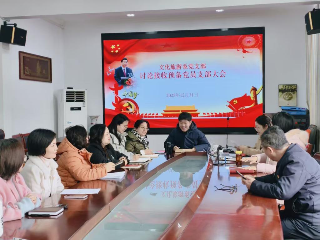 12月31日上午,经济与人文学院文化旅游系党支部在201会议室召开党员大会,专题讨论预备党员阴曙升同志转正事宜。会议由党支部副书记陈露主持。