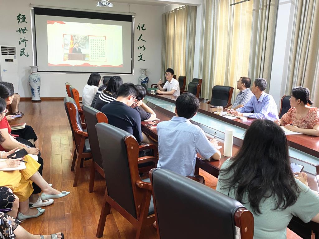 张春明老师从中国共产党自我革命的内在逻辑、历史进程和经验意义三个方面为大家展开分享,以翔实史料、生动事例与大家一起回顾了中国共产党百年的探索历程,重温了共产党团结带领人民取得的伟大成就。张老师的宣讲报告生动深刻,充满激情,使与会同志对党史和党性有了更加全面系统的认识,以更高的激情和更饱满的精神状态守初心、担使命,通过悟思想、办实事,为学院各项事业新局面的全面发展贡献力量。