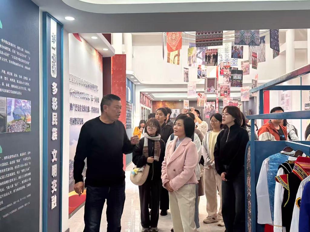 活动以“感知—理解—共鸣—升华—践行”为主线,设置五个环节。党员们首先参观了佴池村民族展馆,佴池村党支部书记、村委会主任张良亲自介绍佴池村多民族共存共融的历史和现状,师生们在多民族聚居的特色村寨文化中,沉浸式体验“共居共融”的和谐氛围。马克思主义学院张春明老师结合村情实际,系统阐释党的民族政策,夯实思想根基。蒙古族学生才丽米格、哈萨克族学生巴丽努尔作为少数民族学生代表,分别分享了本民族文化特色与在校生活感悟。在交流环节,教师党员代表与学生入党积极分子畅谈体会,深化了跨文化理解。“乡村知旅”社团讲述了少数民族科研工作者的感人事迹,进一步激发爱国情怀。